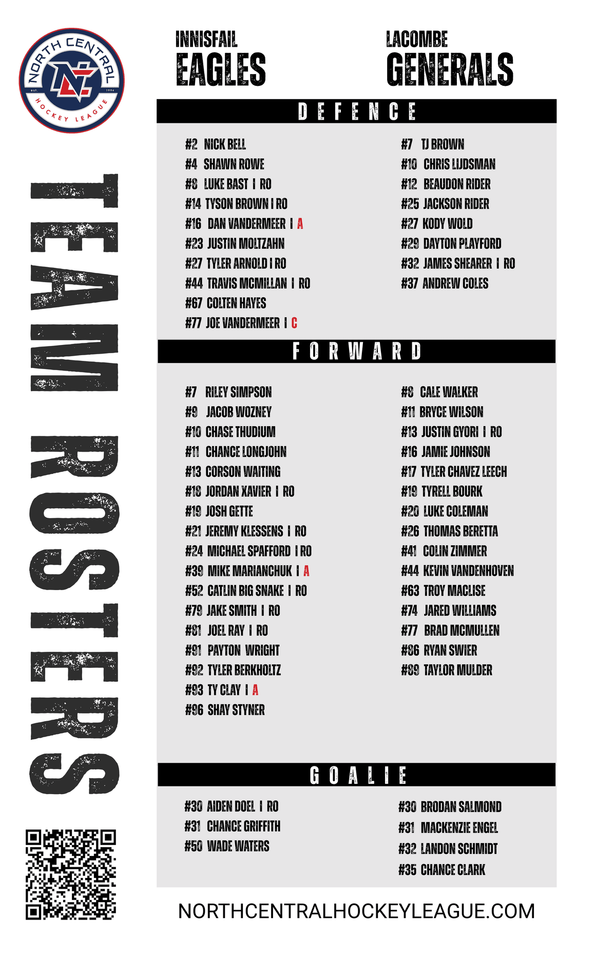 The Eagles hit the ice tonight with a commanding 2–0 series lead over Lacombe in this best-of-seven semi-final clash. After setting the tone in Games 1 and 2, Innisfail has momentum, but the job isn’t finished. Expect a fired-up Lacombe squad pushing back hard as the battle intensifies. Every shift matters. Every goal counts. If you missed the opening games, be sure to check out the recap links below and catch up on how the Eagles built their lead.