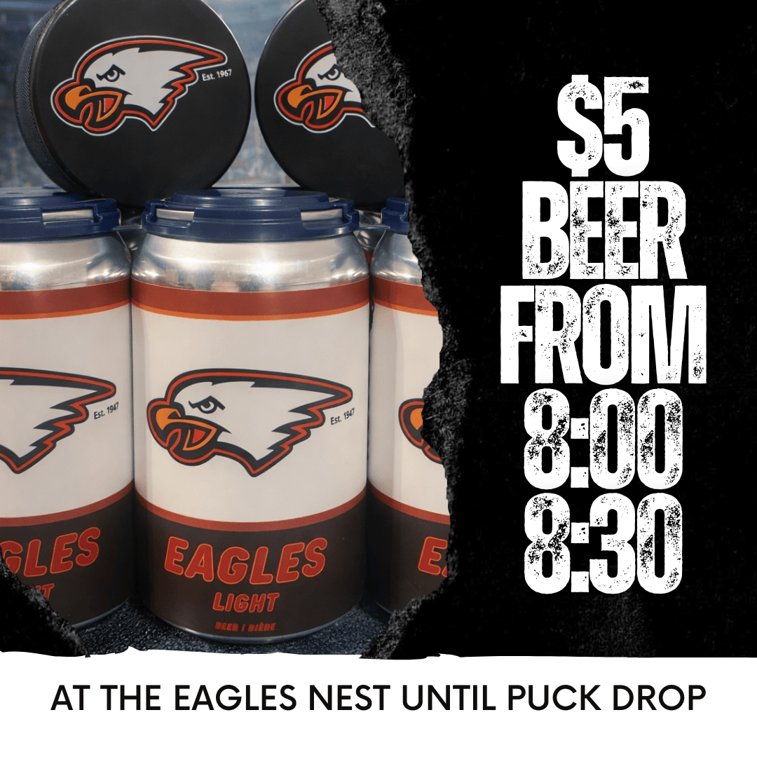 HAPPY HALF HOUR AT EVERY HOME GAME - $5 BEER UNTIL PUCK DROP